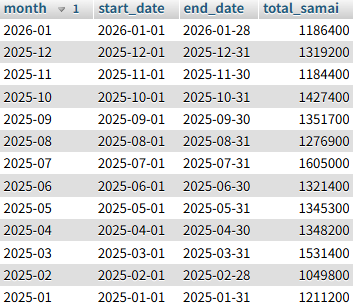 | 1月 | - | - | - | - | - |